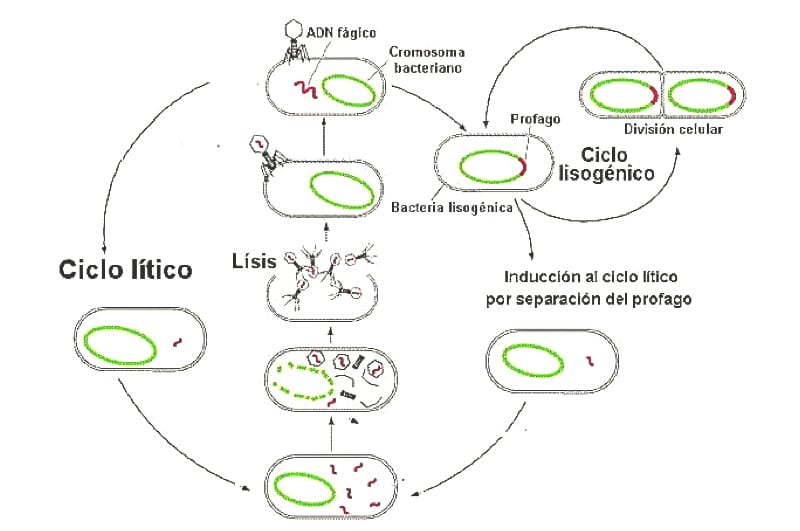 Los virus son parásitos intracelulares obligados, necesitan utilizar la maquinaria de células vivas para poder multiplicarse. Los que infectan bacterias se llaman bacteriófagos o sencillamente fagos. Existen dos clases de fagos:
